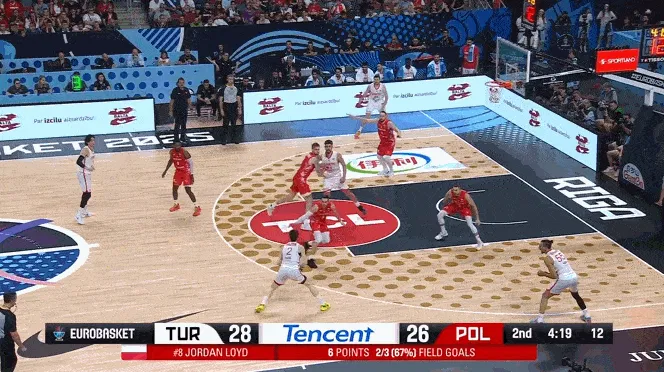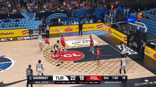 过程上,两队首节还是19-19打平,第二节土耳其打出一波27-13,成功拉开分差,此后土耳其一直紧握优势,下半场分差最小都没有小于过6分。