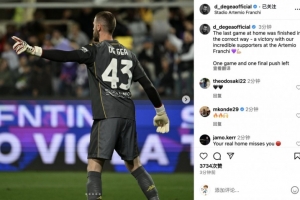 体育资讯5月19日讯 意甲第37轮,佛罗伦萨主场3比2击败博洛尼亚。 赛后,紫百合门将德赫亚更新社交媒体鼓励球队在末轮最后一搏,并写道:“主场收官战在弗兰基球场以应有的方式落幕,在主场与不可思议的球迷们共享胜利💜💪🏼。还剩最后一场...