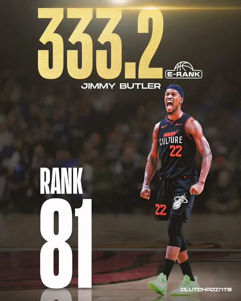 “热火球员吉米-巴特勒的排名超越卡梅罗-安东尼、丹尼斯-罗德曼和克里斯-波什。”